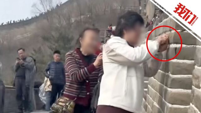 女子在八达岭长城刻字,行拘!